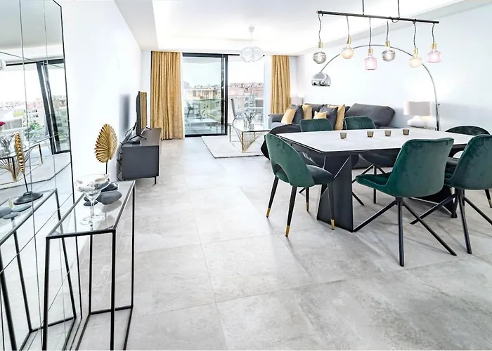 El Inf45P- Modern 3 Bed City Apartment Next To Beach Estepona está situado en Estepona, a unos minutos a pie de il Fun Beach Park Estepona, y cuenta con sauna. El apartamento, con una terraza con vistas a las montañas, está situado a 300 m del Paseo Marítimo de Estepona.